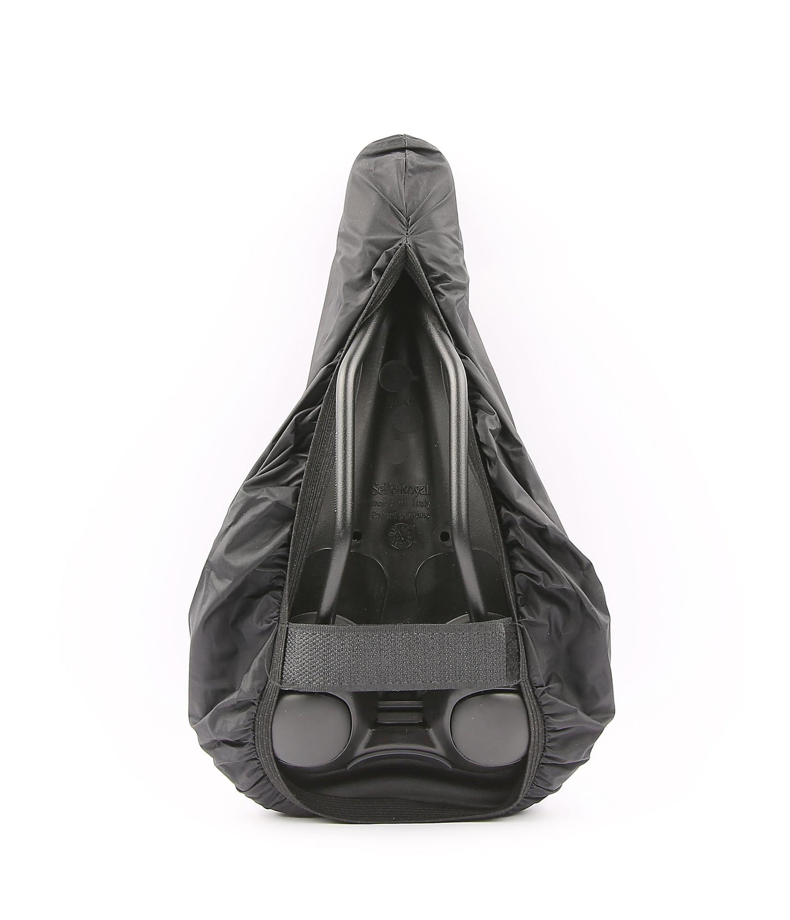 Sadelovertrækket har elastik rundt i den nedre kant og en velcro-strop, således at den sidder solidt fast omkring sadlen og ikke blæser af hvis man stopper op eller forlader sin cykel. Sadelovertrækket er i et tyndt materiale, er derfor det let at tage med til og fra cyklen og let at opbevarere i tasken eller jakkelommen.